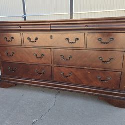 Solid Wood Long Dresser With Nine Drawers In Good Condition All Drawers Open Just Fine $225Fresno, CA