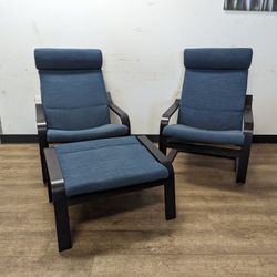 IKEA Modern Black Arm Chairs with Blue Fabric Cushions and Ottoman$260Boulder, CO