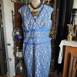 Simply Liliana Dress Cocktail Lace Light Blue Gold Lace Woman's Size 16 Party$40Denver, CO