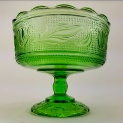 Beautiful Vintage Solid Green Glass Raised Compote Dish - E.O. BRODY CO. M6000 - CLEVELAND USA- On Bottom! $24Shelton, CT