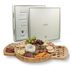 Bamboo Cheese Board and Knife Set, Round Wooden Cheese Board with Utensils$32Cromwell, CT