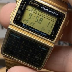 This is a gold-tone Casio DBC-611G-1D Data Bank digital watch with a stainless steel band. $70Fairfield, CT
