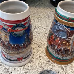 2 Budweiser Holiday Beer Stein Ceramarte Ceramic Mug $15Bridgeport, CT