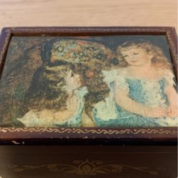 Linden music boxe is a wood music box with silk padded picture. August Renoir's "The Charpentier Children" is pictured on the silk$12West Cornwall, CT