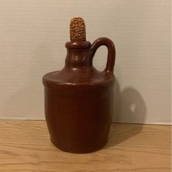 Vintage Brown Stone Jug With Corn Husk Cork, Signed 8” X 5 1/2” B15$16Litchfield, CT