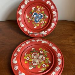 Pair of 10” Wooden Red Plate Toleware Hand Painted Pennsylvania Dutch Folk Art Wall$35Woodbury, CT