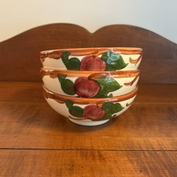 Set of 3 Vintage Franciscan Apple Chili Oatmeal Footed Bowls - just under 5.75” diameter $40New Milford, CT
