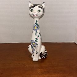 Long Neck Floral Cat Figurine Hand Painted Embassy Quality Products Japan 9” H A6$18West Cornwall, CT