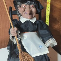 Halloween Decoration Scary Laughing Witch With Broomstick And Rocking Chair Trick Or Treat Vintage $20Hartford, CT