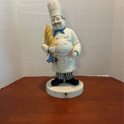 Tracy S Flickinger 1998 Chef Resin Statue Holding Baggett bread 15” kitchen Decor A6$49West Cornwall, CT