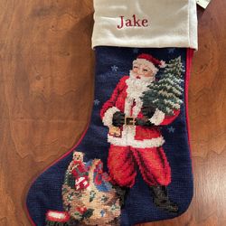 Hold Everything Felt Needlepoint Stocking Monogrammed “Jake” Christmas Decoration about 17” x 11”$25Woodbury, CT