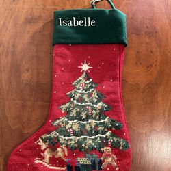 Hold Everything Felt Needlepoint Stocking Monogrammed Isabelle Christmas Decoration about 17” x 11”$25Woodbury, CT