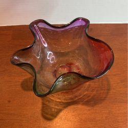Signed Adam Jablonski Polish Art Glass Bullicante Multicolor Handkerchief Bowl 5 1/2” X 8 1/2” L9$45West Cornwall, CT