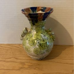 Italian pottery vase greens pinks blues 6 1/2” x 5” Signed A23$14West Cornwall, CT