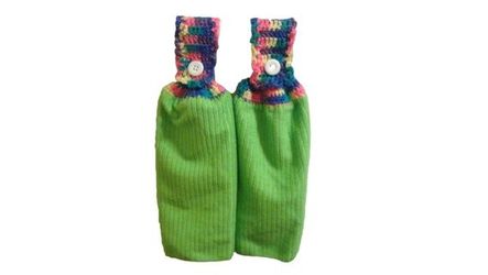 Oven Door Towels-Kitchen Towel Set-Lime Green and Rainbow Multi Color Hippie-Rainbow Crochet Top with White Buttons-Kitchen Towels Set of 2$16East Hartford, CT