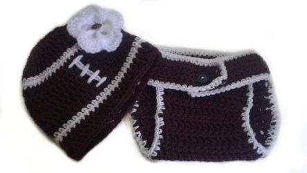Custom Personalized Baby Girl White Flower Button Football Sports Fan Photo Prop Adjustable Diaper Cover and Beanie Hat Set$30East Hartford, CT