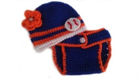 Custom to Baby Girl NY Mets Inspired Baseball Flower Button Sports Fan Photo Prop Adjustable Diaper Cover and Beanie Hat Set$31East Hartford, CT