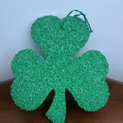 Vintage Plastic Melted Popcorn Glitter Plaque Ireland Irish Shamrock โ๏ธ Decoration 16โ long x 14.25โ tall $25New Milford, CT