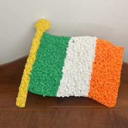 Vintage Plastic Melted Popcorn Glitter Plaque Ireland Irish Flag Decoration 14โ long x 13.5โ tall $30New Milford, CT