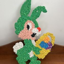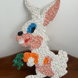 Vintage Plastic Melted Popcorn Glitter Plaque Easter Bunny Decoration 21.5โ x 12.5โ$25New Milford, CT