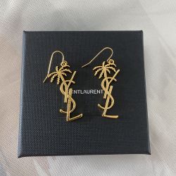 Metal Monogram Palm Earrings Gold $250Middletown, CT