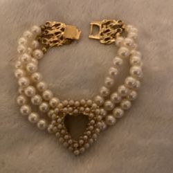 7” Multi-strand Beige Pearl And Gold Heart Shaped Bracelet $15New Haven, CT