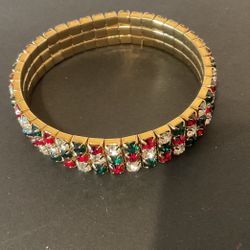 Goldtone Stretch Bracelet With Red,white,& Green Rhinestones $12New Haven, CT