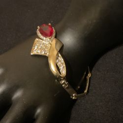 8” Gold Tone Rose Bracelet With Ruby And Clear Rhinestones $15New Haven, CT
