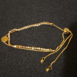 Goldtone Double Strand Adjustable Bracelet With Rhinestones $15New Haven, CT