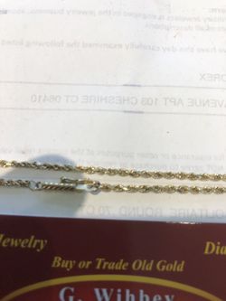 14 kt gold rope bracelet 8”$49Wolcott, CT