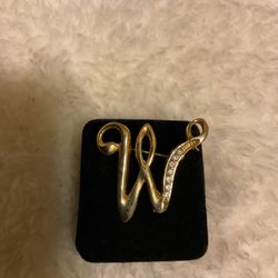 Goldtone Initial (w) Brooch With Rhinestones $10New Haven, CT
