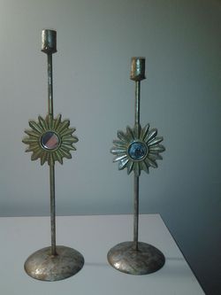 Set of 2 pewter / silver hurricane candle holders.$50Milford, CT