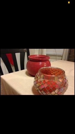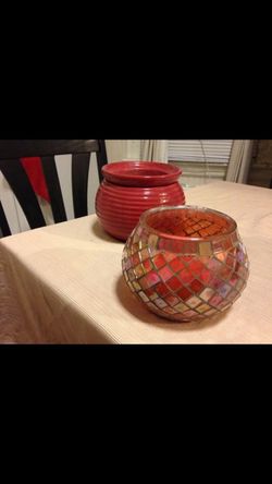 Two candle holders- one mosaic and another red ceramic$5Wallingford, CT
