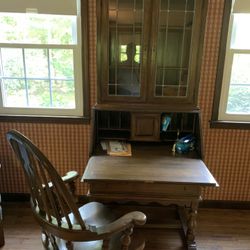 BEAUTIUL SOLID OAK DESK WITH FOLD DOWN DOOR WITH LOCK .COMES WITH OAK CHAIR AS SEEN IN PICTURE.HAS ONE PULL OUT DRAW.. 350.00$350Meriden, CT