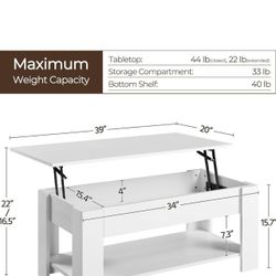 Lift Top Coffee Table w/Hidden Storage Compartment and Storage Shelf - Lift Tabletop for Living Room Reception Room, White$65Stratford, CT