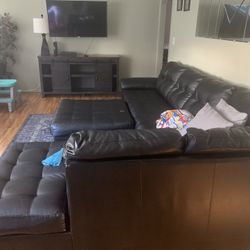 Leather couch cat scratches on bottom minor comes with accent chair$185Berlin, CT