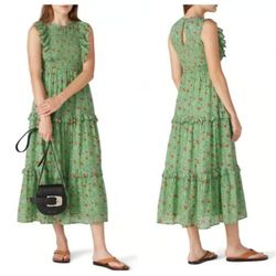 Banjanan Iris Floral Maxi Ruffle Tier Sleeveless Sheath Cotton Green Dress