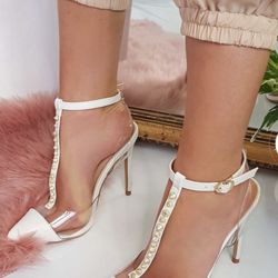 Tiffany Studded Perspex Court Heels in White$30Sherman, CT