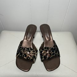 Super cute y2k brown square toe cheetah leopard print kitten heels gold bow detail$32Bridgeport, CT
