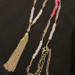 30”+ Extension. Pink Beaded Necklace With Dangling Gold Chain Pendant $15New Haven, CT