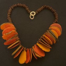 20” Wood Beaded Necklace With Multi-Colored Pendants/flaps $15West Haven, CT
