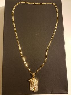 Gold plated Figaro chain with jesus pendant$42Middletown, CT