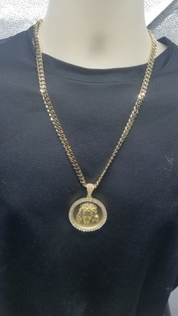 14k gold filled cuban chain with oversized jesus medallion pendant. 14k stamped.$85Middletown, CT