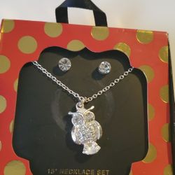 Owl With Faux Bling Pendant With 18" Chain And Stud Earrings $20Southington, CT