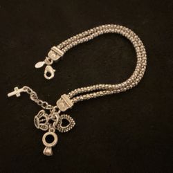 7” SilverTone Double Strand Charm Bracelet…heart,crown,Diamond Ring,& Cross$18New Haven, CT
