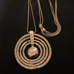 20”-30” Adjustable Goldtone Necklace With Large Multiple Rings Pendant With Sparkly Rhinestones $18New Haven, CT