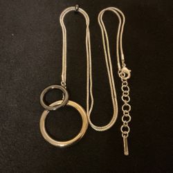 24” SilverTone Necklace With Large Double Ring Pendant $12New Haven, CT