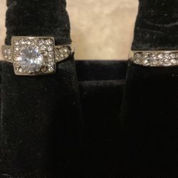 WOMANS Stunning 3 Piece Round Cut White Sapphire Set In 925 Sterling Silver Striking EngagementRing WeddingBand Set $145West Haven, CT