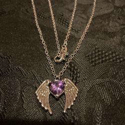 18” SilverTone Necklace With Purple Amethyst Heart With Angel Wings Pendant $15New Haven, CT