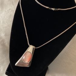 Silver 24” Necklace And Pendant With Pink Jade Stone$20New Haven, CT